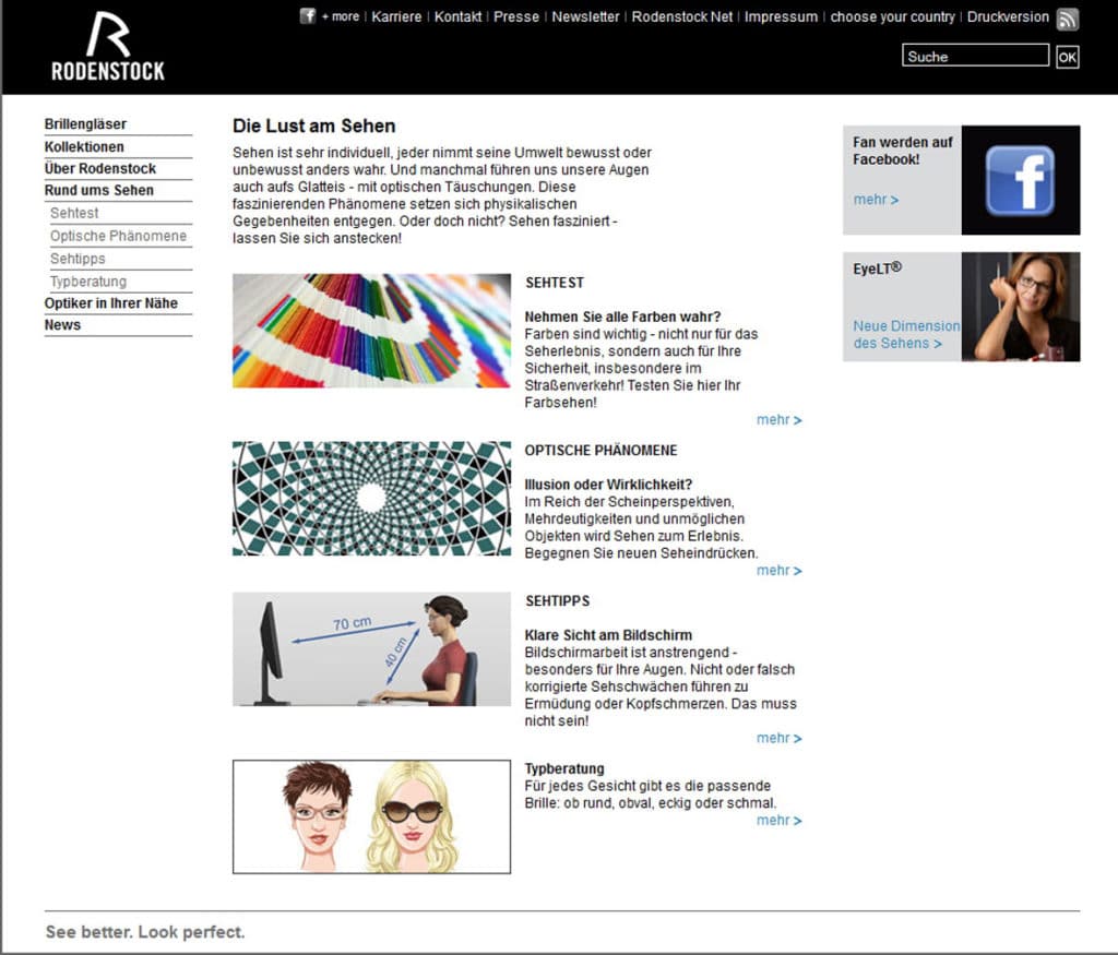 Rodenstock hat seinen Web-Auftritt im November letzten Jahres um die Präsenz auf Facebook, Twitter und YouTube sowie den Rodenstock Blog erweitert und blickt positiv auf die ersten fünf Monate zurück: „Das schnelle und qualitative Wachstum unserer Fangemeinschaft bestätigt den Ausbau unserer Plattformen in der virtuellen Welt. Wir freuen uns, die Faszination der Brille mit unseren Kunden und Endverbrauchern zu teilen”, so Stefanie Biereder, Head of Corporate Communications, Rodenstock GmbH.
