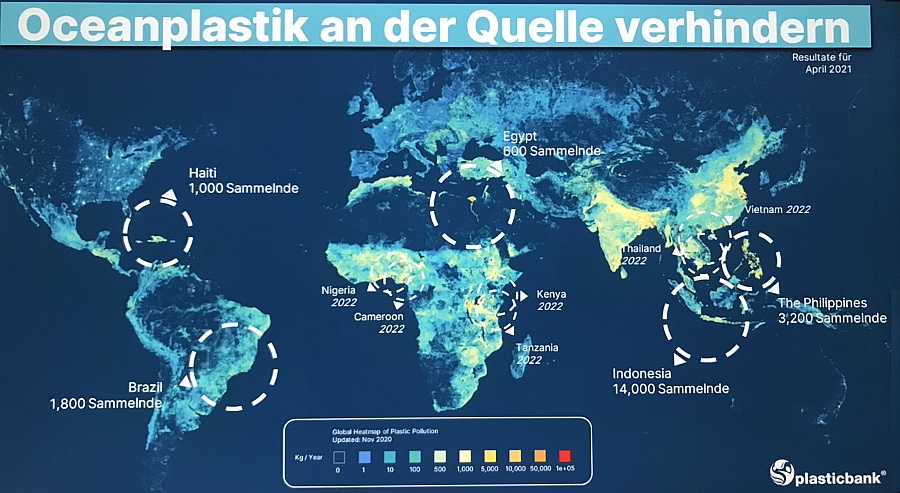 Plastic Bank, ein gemeinnütziges soziales Unternehmen, 2014 von dem Kanadier David Katz gegründet und mit mittlerweile 200 Mitarbeitern, hat bereits 34 Mio. Kilogramm Plastik gesammelt. Was auch dringend nötigt sei, wie Peter Nitschke, Direktor für kommunale Partnerschaften, erklärte. „Jedes Jahr wandern 13 Mio. Tonnen Plastikmüll in unsere Ozeane. Bis 2050 wird es mehr Plastik im Meer geben als Fische.“