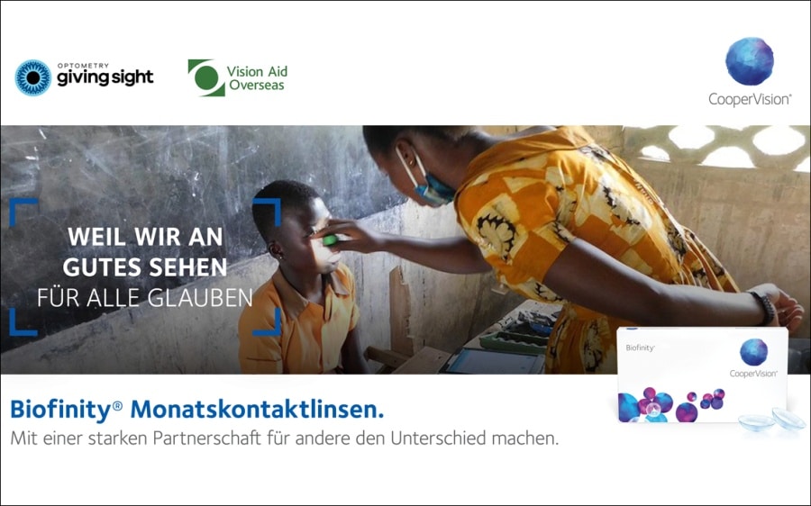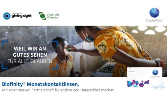 Mit der Kampagne „Weil wir an gutes Sehen für alle glauben“ möchte CooperVision DACH auch dort zur Augengesundheit beitragen, wo eine Versorgung normalerweise erschwert ist. In Partnerschaft mit „Optometry Giving Sight” und „Vision Aid Overseas” sollen Biofinity-Gewinne helfen, Menschen in Ghana eine augenärztliche Versorgung zu ermöglichen.