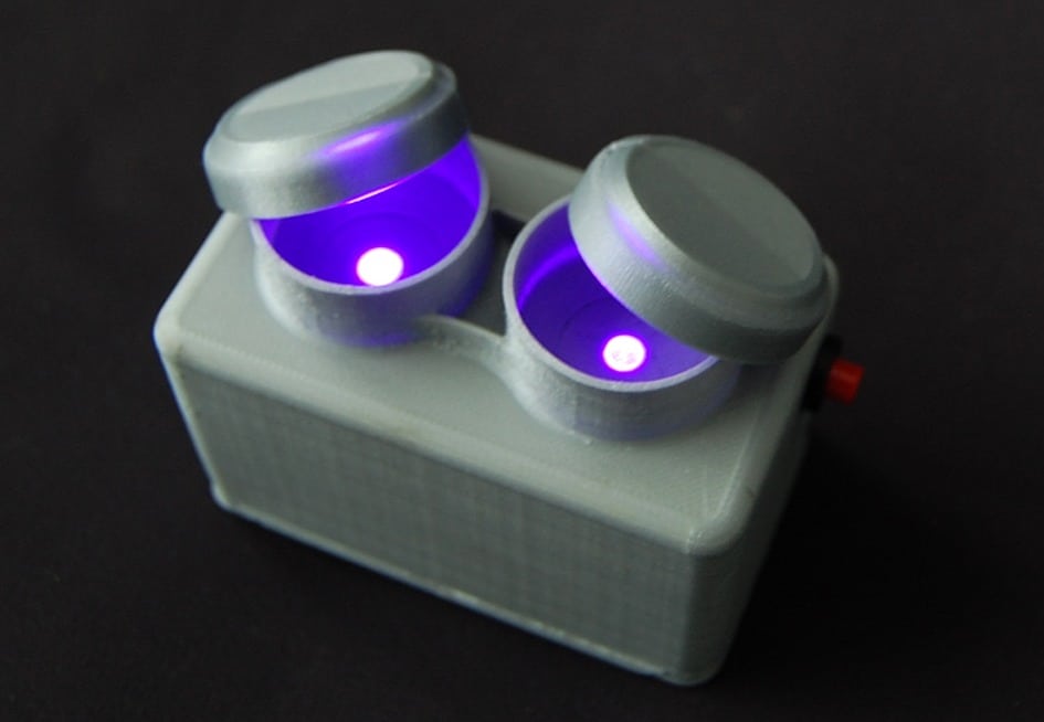 Abbildung 5: Foto eines zukünftigen Kontaktlinsenaufbewahrungsbehälters mit violetten LEDs