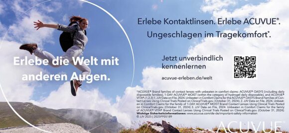 Diese Vorteile von Kontaktlinsen rückt Johnson & Johnson Vision ab sofort mit seiner neuen Endverbraucher-Kampagne „Erleben Sie die Welt mit anderen Augen“ in den Fokus – und stellt gleichzeitig heraus, dass moderne Kontaktlinsen von ACUVUE® mit hochwertigen Materialien und innovativen Technologien hohe Sehqualität und Tragekomfort bieten. Für die Kampagne, die bis zum 30. April 2025 läuft, kooperiert der Kontaktlinsenhersteller mit der Fluggesellschaft Eurowings. Pünktlich zu Beginn der Reisesaison werden Bordkarten mit aufmerksamkeitsstarken Werbeanzeigen bedruckt, redaktionelle Beiträge in Bordmagazinen publiziert und Newsletter verschickt.