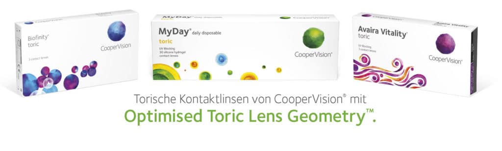 Linsen mit der Optimised Toric Lens Geometry™ übertreffen die Stabilität anderer torischer Kontaktlinsen und weisen dabei gleichzeitig die geringste Abweichung von der Sollachse auf. Dies belegt eine unabhängige klinische Studie. Durch ihr spezielles Design richten sie sich im Vergleich zu anderen Kontaktlinsen-Designs schneller auf dem Auge aus und verkürzen somit deutlich die Anpasszeiten – ein ganz wichtiger Aspekt für den Erfolg bei der Gewinnung und Bindung von Kontaktlinsenkunden. Weiche Übergänge an der natürlich benetzbaren Oberfläche minimieren die Bewegung der Kontaktlinse beim Lidschlag und bewirken einen besonders hohen Tragekomfort. Die große torisch-optische Zone gewährleistet klare Sehschärfe, das optimierte torische Prismenballastband minimiert die Rotation für eine bessere Sehstabilität. Sowohl Biofinity toric®, MyDay® toric als auch Avaira Vitality® toric sind Silikonhydrogel-Kontaktlinsen und sorgen durch ihre hohe Sauerstoffdurchlässigkeit für gesunde weiße Augen.