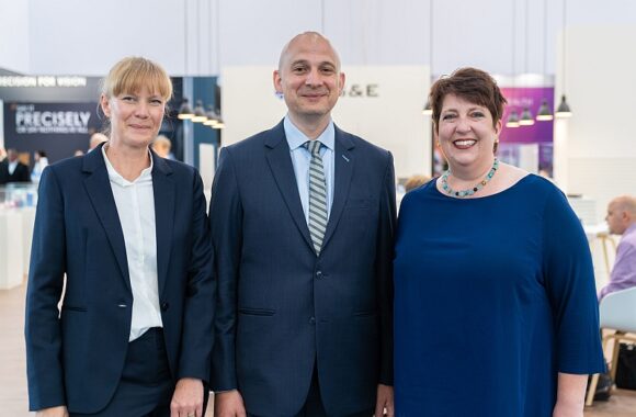 Kundenkontakt stand im Vordergrund – das MPG&E-Führungsteam blickt auf eine erfolgreiche opti 2022 zurück (von links): Marketingleiterin Anja Clages, Geschäftsführer Fabian Hasert und Jutta Heinrichs, Leiterin Produktmanagement (Bild: MPG&E)