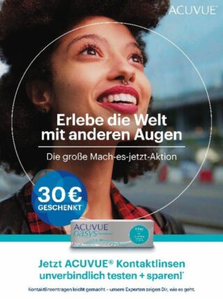 Johnson & Johnson Vision unterstützt die Kontaktlinsen-Expert:innen dabei mit einer neuen Endverbraucher-Kampagne unter dem Motto „Erlebe die Welt mit anderen Augen“. „Die reichweitenstarke Multi-Channel-Kampagne rückt die Vorteile von Acuvue Oasys 1-Day in den Mittelpunkt“, so Friederike Winkel, Head of Marketing Vision DACH bei Johnson & Johnson Vision in Norderstedt. „Die Tageslinse verhilft zu einem neuen Sehen, zu Freiheit und Spontaneität. Sie ermöglicht es, in allen Sehsituationen das Leben in vollen Zügen auszukosten und unbeschwert vielfältigen Aktivitäten nachzugehen. Das vermittelt die Kampagne unterhaltsam und emotional mit aufmerksamkeitsstarken Visuals und vielfältigen Social-Media-Aktivitäten.“