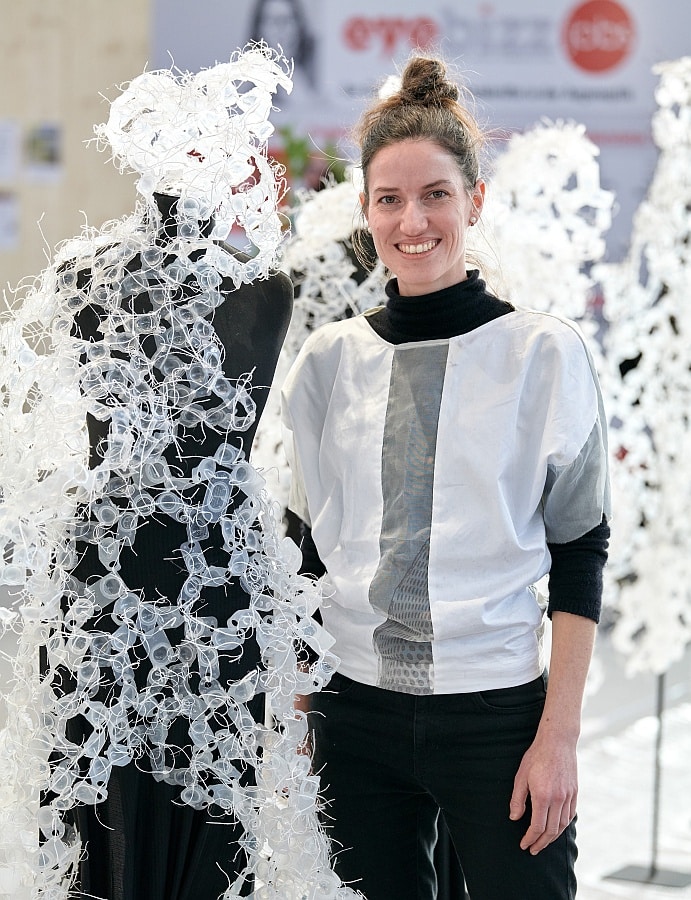 Die Künstlerin Velia Dietz hat an der Staatlichen Akademie der Bildenden Künste Stuttgart studiert und im Anschluss das Landesgraduierten-Stipendium erhalten. Seit geraumer Zeit setzt sie sich kritisch mit der Flut an ausgemusterten und weggeworfenen Materialien auseinander. „Die Verwendung außergewöhnlicher Materialien und das Ausloten der Grenzen zwischen Design und Kunst charakterisieren meine Arbeiten“, sagt die Textildesignerin.