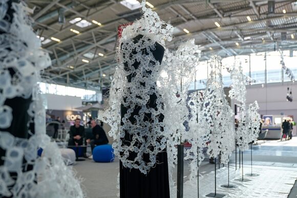 Auf der opti stellte Velia Dietz Kunstobjekte aus Kontaktlinsen-Blistern aus. Ein Material, mit dem die Künstlerin noch einiges vor hat, zumal der Vorrat (leider) unerschöpflich erscheint. Wie sie dazu kam, diese Kunst zu entwerfen, erläuterte sie auf dem Sustainability Hub der opti und anschließend exklusiv im Gespräch mit eyebizz.