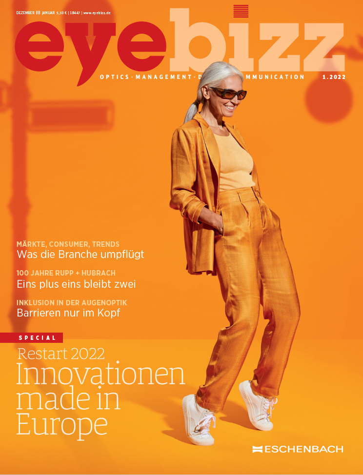 MÄRKTE, CONSUMER, TRENDS: Was die Branche umpflügt +++ 100 JAHRE RUPP + HUBRACH: Eins plus eins bleibt zwei +++ INKLUSION IN DER AUGENOPTIK: Barrieren nur im Kopf +++ SPECIAL: Restart 2022 Innovationen made in Europe3,50 €