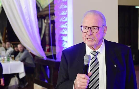 Nach der leckeren Hauptspeise vom Buffet trat SWAV-Ehrenvorsitzender Dieter Mollenkopf ans Rednerpult, mit der 75-jährigen Geschichte des SWAV im Gepäck. Von der Gründung am 21. November 1949 in Koblenz über die Beitritte der einzelnen Innungen bis hin zur Eröffnung des Aus- und Weiterbildungs-Zentrums in Karlsruhe sprach er alle wichtigen Stationen des Verbandes an. Wer an diesem Abend noch mehr über die Vorsitzenden und Geschäftsführer erfahren wollte, konnte sich in der ausliegenden 20-seitigen Festschrift informieren.