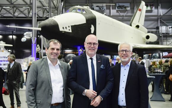 Mit einem Sekt-Empfang in der Raumfahrthalle – in direkter Nähe zum Space Shuttle Buran – wurden die Gäste begrüßt. Unter den Anwesenden fanden sich sowohl aktuelle als auch ehemalige Vorstandsmitglieder des SWAV und langjährige Wegbegleiter von Haupt- und Ehrenamt. ZVA-Präsident Christian Müller und Peter Haas, Hauptgeschäftsführer von Handwerk BW, befanden sich ebenfalls unter den Gästen und bedankten sich auf der Bühne in ihren Grußworten für die sehr gute Zusammenarbeit in den letzten Jahren.