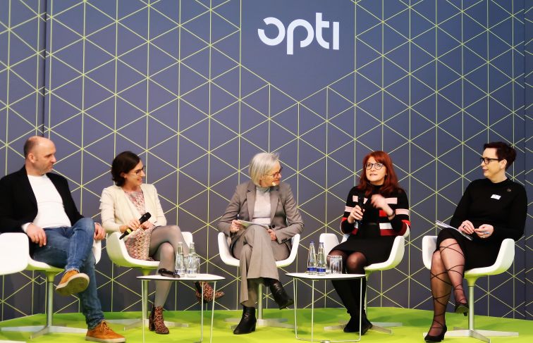 Unter dem Motto “Alexa, übernehmen Sie!“ diskutierten (von links): Jens-Peter Klatt, Ruth Anna Weißmann, Christine Höckmann, Nicole Hanisch und Susanne Pieler auf dem opti-Forum