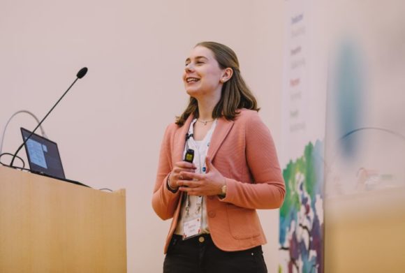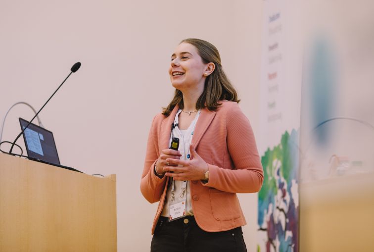 Kathrin Stork, Masterstudentin der Ernst-Abbe-Hochschule, Jena, während der Präsentation ihrer Arbeit beim CooperVision „FORCE Student of the Year“-Finale (Bild: CooperVision)
