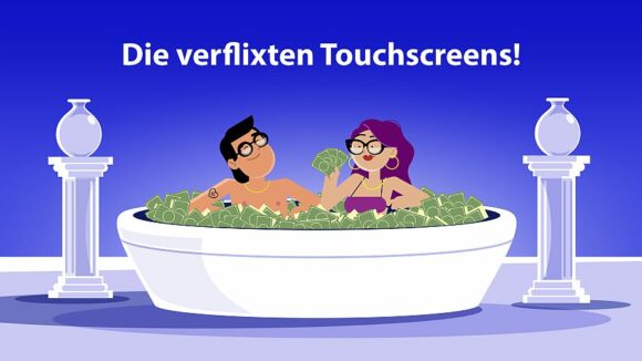 Titelbild zum Animationsfilm „Die verflixten Touchscreens“ (Bildnachweis: DBSV/vjsual)