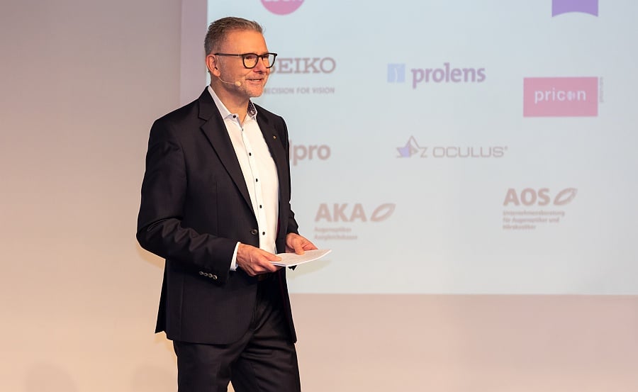 Weiter ging es mit Cathleen Kabashi, opti-Leiterin, die einen Einblick in die Neuerungen der Fachmesse 2025 gab, und Benjamin Loeffler, Freiform GmbH, der erklärte, Augenoptiker sollten sich nicht mit zufriedenen Kunden zufriedengeben. Es komme auf das „Mehr“ an, um bei einem Wiederbeschaffungs-Zeitraum von 40 Monaten beim Kunden in – im besten Falle positiver – Erinnerung zu bleiben. Er zeigte, wie emotionale Erlebnisse einen bleibenden Eindruck hinterlassen können – sei es durch kleine Überraschungen bei der Brillen-Abholung oder persönliche Gesten wie handgeschriebene Brillenpässe.