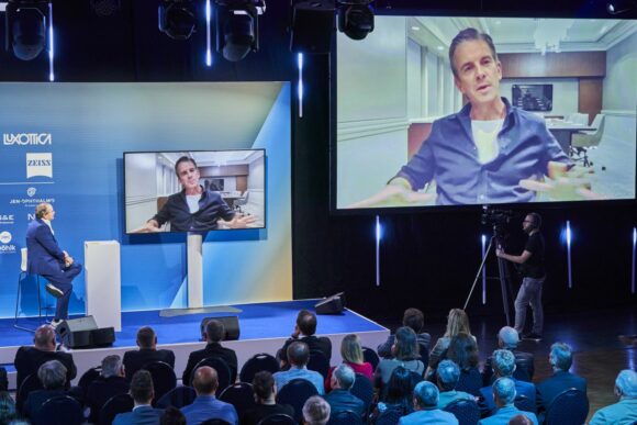 Medienprofi Wolfram Kons, seit 20 Jahren der Mann am Mikrofon, führte auch beim Jubiläumsevent wieder durchs Programm und leitete mit SPECTARIS-Vorstandsvorsitzenden Josef May das Trendforum ein. May stimmte auf die Zukunft ein: „Vor 20 Jahren hatten wir in der augenoptischen Industrie zusammen mit Jochen Reinke die schöne Idee für unser jährliches Branchenevent. Seither ist in der Welt der Augenoptik viel passiert und heute erleben wir die großartigen Chancen, die die Digitalisierung der Augenoptik liefert. Sie hilft uns in der Pandemie, beim Marketing und sogar dabei, das Nachwuchsproblem in den Griff zu bekommen.“