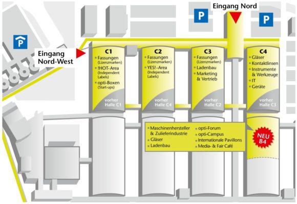 Die Hallenbelegung wird deshalb angepasst, wobei die Augenoptiker weiterhin auf die klare Struktur und eine gute Orientierung auf der opti zählen könnten. „Die Platzierung der Aussteller innerhalb der Hallen und die Aufteilung nach Produktgruppen bleibt weitestgehend identisch“, erklärt opti-Projektleiterin Bettina Reiter. „Um aber die Halle B4 sinnvoll zu integrieren, werden die Hallen neu arrangiert.“ Das heißt: Die Halle C1 bleibt wie gewohnt, die Aussteller der bisherigen C4 ziehen in die C2 und alle weiteren Hallen rücken einen Platz weiter.