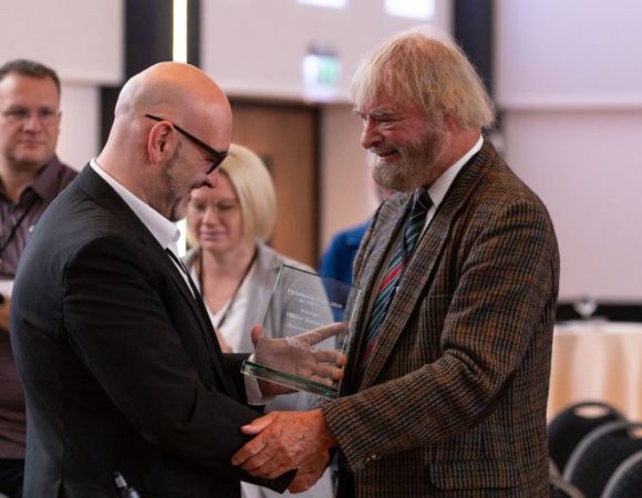 Der Peter-Abel-Preis, stellvertretend entgegengenommen von Sebastian Marx (links) und Wolfgang Sickenberger (Bild: VDCO/Peter Magner)