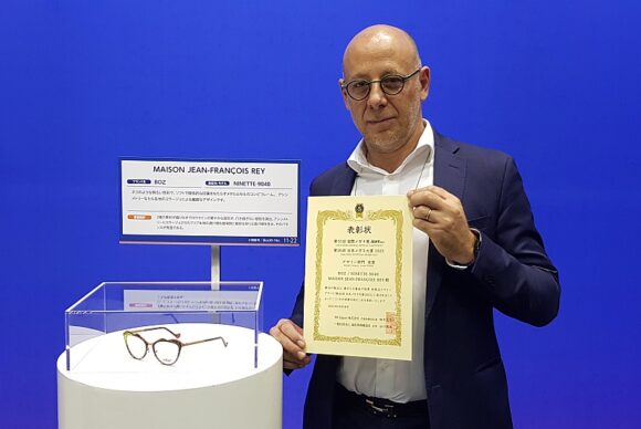 Dan Levi von J.F. Rey bei der Preisverleihung auf der IOFT 2022 – ein Modell der Kollektion BOZ erhielt den Design Award 2023 (Bild: J.F. Rey)