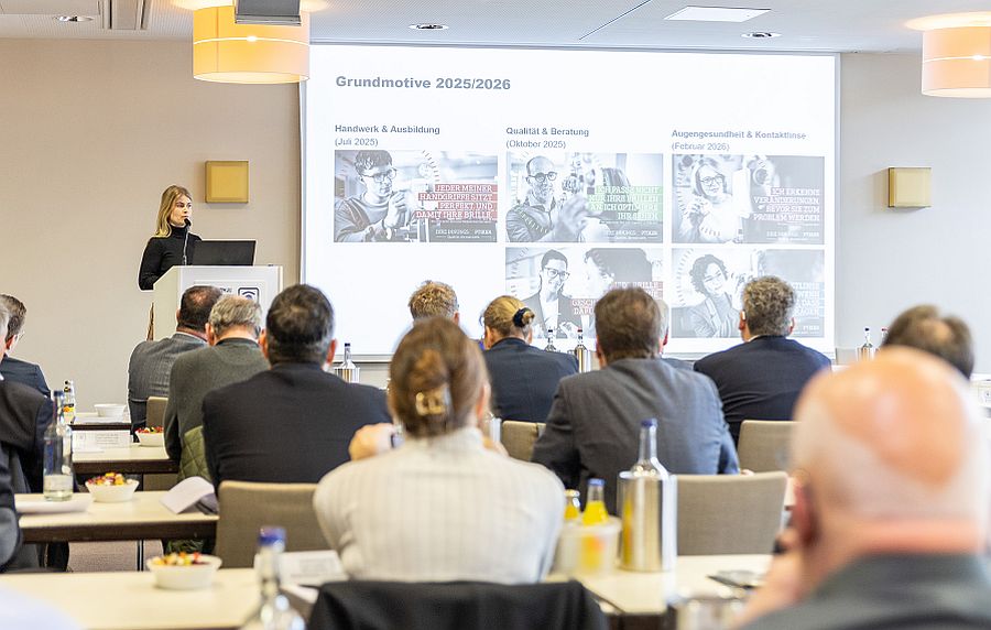 Einen Ausblick auf die Weiterentwicklung der Imagekampagne „Ihre Innungsoptiker“ gab Johanna Rodenbäck von der Agentur Komm.passion. Die Kampagne soll ab dem zweiten Quartal 2026 mit neuen Kommunikationsansätzen fortgeführt werden, um die Sichtbarkeit des Berufs weiter zu stärken und insbesondere junge Menschen für die Augenoptik zu begeistern. Die anschließenden Fragen und Anregungen der Delegierten werden in die weitere Konzeption der Kampagne aufgenommen.