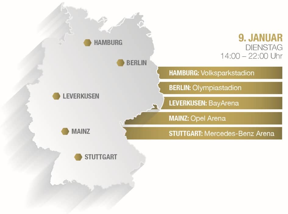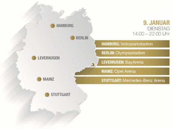 Die Optikbranche startet am 9. Januar 2018 mit der ersten Veranstaltung in die neue Brillensaison: Wieder laden De Rigo, Eschenbach, Marchon, Menrad und Safilo zum Ordertag Kick Off ein. Als Austragungsorte für die Präsentation der neuen Brillen-Trends dienen fünf große Fußballstadien in Deutschland.