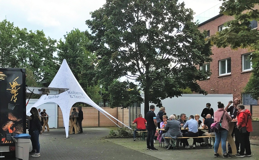 Das gute Wetter und leckere Essen sorgten für beste Stimmung und wenige, Corona bedingte Einschränkungen, da fast die gesamte Veranstaltung im neu gestalteten Außenbereich von Koberg & Tente in Münster stattfinden konnte.