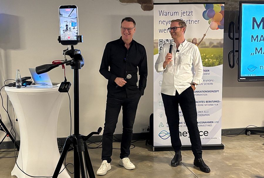 Zum Schluss einer runden Veranstaltung erzählten David Gerlach und Robert Mergenthal als Mit-Gastgeber von Neyece aus der Praxis. Die beiden Augenoptiker widmeten sich den offenen Fragen, die sich manchmal auch abseits des fachlichen Know-hows in den Weg stellen. Zum Beispiel: Wie kommt das neue Kundenklientel zu mir und wie baue ich Kontakt zu meinen Augenärzten auf? Die Neyece-Gruppe stehe dafür, das Myopie-Management als Dienstleistung und nicht als Produkt in die Betriebe zu implementieren, nicht zuletzt sei dieser Grundgedanke eine Intention für Gerlach und Mergenthal, die Myopie-Management-Roadshow gemeinsam mit partnerauge zu realisieren.