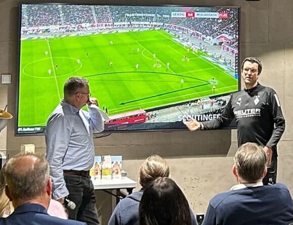 Das auf diesem Weg noch viel zu tun ist, wurde auch klar an diesem Abend in Mönchengladbach. Was nicht zuletzt beim Thema Netzwerk offensichtlich wurde: Kein Augenarzt, keine Orthoptistin und kein Kinderarzt waren zu Gast, „was sicher auch an der Ansprache lag, aber auch grundsätzlich ein Problem offenkundig werden lässt. Hier werden wir als Veranstalter bei den künftigen Events ein besonderes Augenmerk legen“, meinte Rütten, dessen ehemaliger Arbeitskollege Dr. Philipp Schützendorf kein Augenarzt , sondern Leiter Analyse und Entwicklung bei Borussia Mönchengladbach ist. Schützendorf legte in seinem Impulsvortrag zu Beginn des Programms die Latte hoch für die folgenden Referenten und machte sich die „Visualisierung als Hilfsmittel der Analyse“ dafür zunutze.
