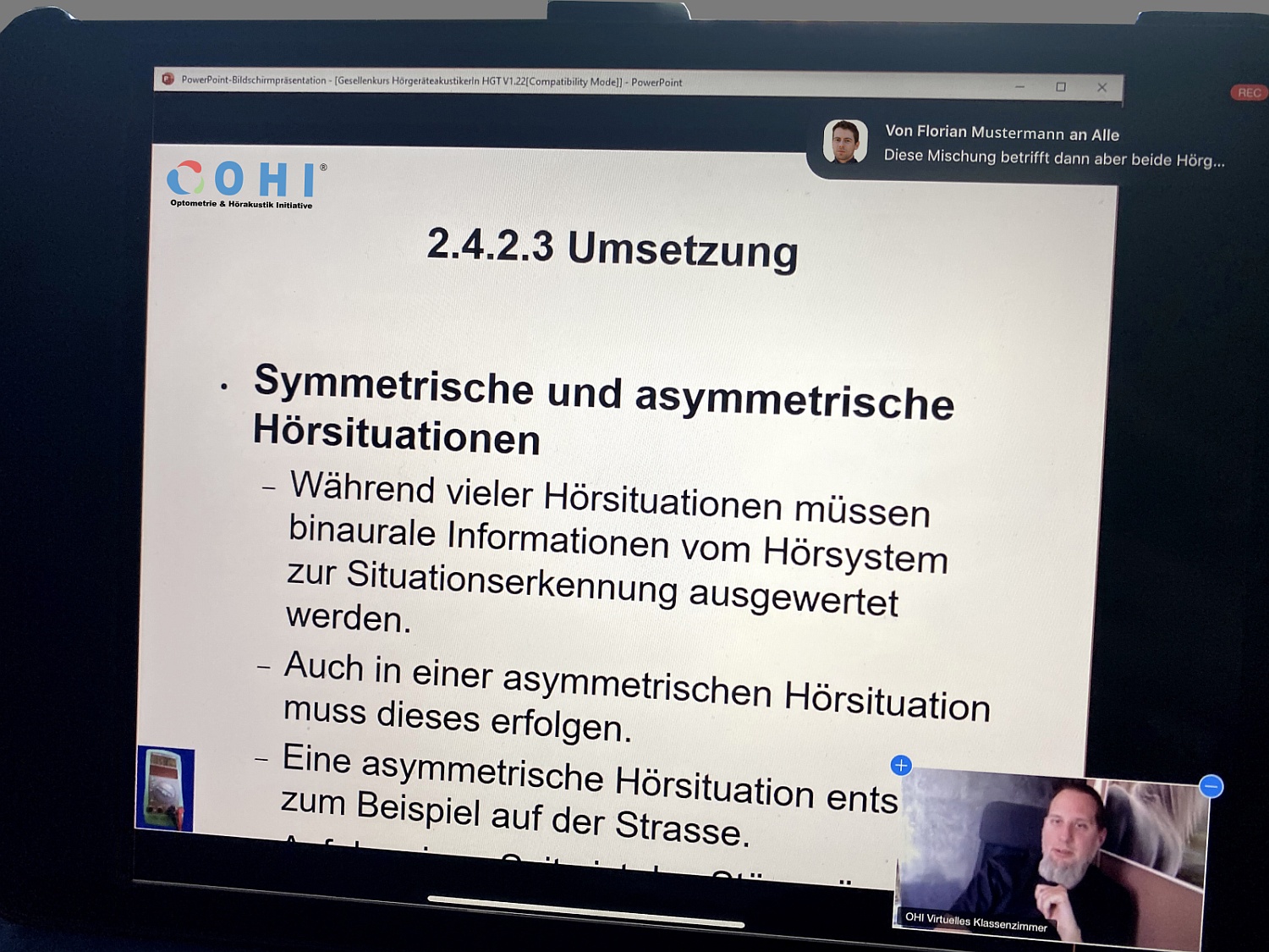 Bereits seit dem 16. März 2020 werden Augenoptiker und Hörakustiker bei OHI-Schulungen aufgrund der Ausgangsbeschränkungen online unterrichtet. Auch die Vortragenden müssten ihr Zuhause nicht mehr verlassen. Sie unterrichteten ebenfalls bis zur Beruhigung der Situation von ihrem Zuhause aus und sind mit einer speziellen Software in einem Virtuellen Klassenzimmer mit allen Lehrgangsteilnehmern verbunden.