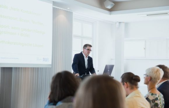 Katharina Raschka, BSc, verglich die Anpassung von Kontaktlinsen mit der Anfertigung von Maßschuhen: So wie es unterschiedliche Fußformen gebe, so gebe es auch individuelle Augenformen. „Fast jeder kann Flip-Flops tragen, aber nicht jedem passen sie“, so Raschka.