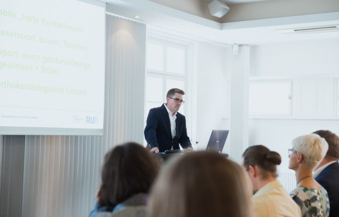 Till Krusche, M.Ed., Sportwissenschaftler aus Bochum, berichtete über Sportler als visuelle Mehrkämpfer, die über das Sehen eine permanente Orientierungsgrundlage erhielten, um eigene Bewegungen kontrollieren und Bewegungen ihrer Gegner und Mitspieler besser beurteilen zu können. Studien würden belegen, dass für das Halten des Gleichgewichts – beziehungsweise für dessen Wiedererlangen – das periphere Sehen hauptverantwortlich ist.