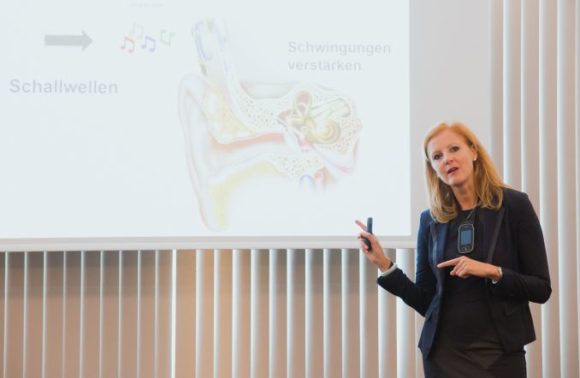 Unter dem Credo „Was Hänschen nicht lernt….“ referierte die diplomierte Psychologin Mag. Anja Jaritz über das Thema auditive Verarbeitungs- und Wahrnehmungsstörungen (AVWS) und stellte anschaulich deren Folgen auf die Verarbeitung von Kindern dar. So erlerne bereits das ungeborene Kind während der Schwangerschaft Sprachmuster, die es in der Zukunft benötige, um Sprache zu erlernen und auch zu verstehen.