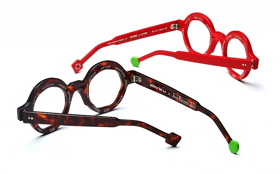 Berührend die Geschichte hinter dem nominierten Modell « Before x After » von Sabine Be x Jean Philippe Joly. Das Modell entstand aus einem gemeinsamen Gedanken in sozialen Netzwerken während der Coronavirus-Pandemie und der immensen Traurigkeit, das Javits Center in New York in ein provisorisches Krankenhaus verwandelt zu sehen. Dieser vollständig in Frankreich hergestellte Mazzucchelli-Acetatrahmen ist außen rund wie die Erde, die sich zuvor gedreht hat – „Before“, und innen verbeult wie unsere Erde, die sich danach nicht mehr sehr rund dreht: „After“.