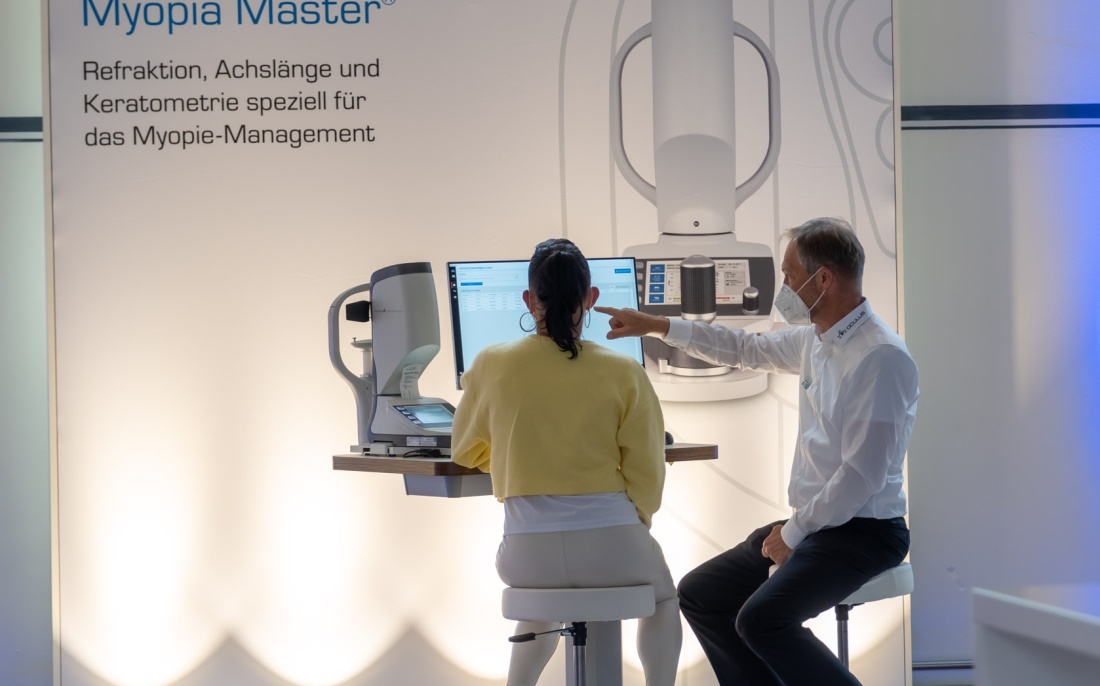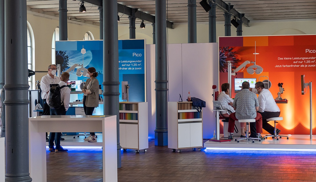 In Berlin gastierte der Hersteller feinoptischer Geräte und Instrumente für Ophthalmologen, Optometristen und Augenoptiker*innen mitten in Kreuzberg in der Heeresbäckerei, einem beeindruckenden Industriedenkmal an der Spree, das für Events genutzt wird. Von den feinoptischen Geräten, die Oculus in der kleinen Halle aufgebaut hat, fand besonders der Myopia Master Zuspruch.