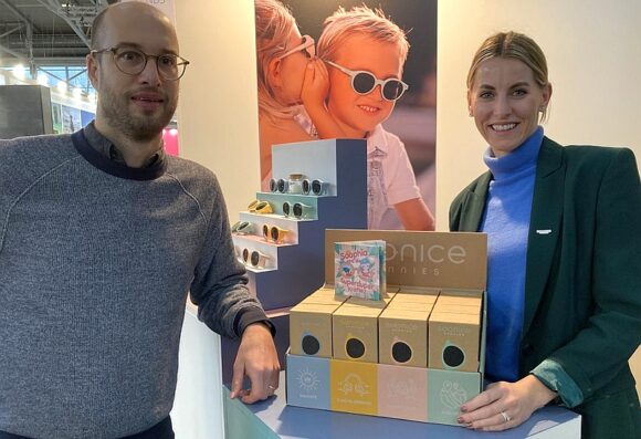 Wir sind 2022 in Österreich gestartet, jetzt zum ersten Mal auf der opti. Wir haben nicht einfach Erwachsenen-Rahmen kleiner gemacht, sondern viel über Kinderbrillen nachgedacht und darum ein paar Features wie, z.B. Seitenklappen oder Klick-on-Bügel eingebaut. Von den Besuchern bekamen wir gutes Feedback. Wir produzieren in Italien, das Material wird aus recycelten Fischernetzen gewonnen. (pe)