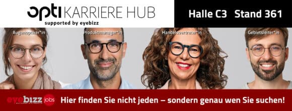 Zusammen mit eyebizz Jobs treffen sich auf dem „Karriere Hub“ in Halle C3, Stand 361, in inspirierender Atmosphäre Arbeitgebende und Arbeitssuchende der Augenoptik bei Speed-Datings, Career Pitchs und Gespräche mit High-Potentials. Eine Job-Wall, weiterführende Vorträge zu Karrierethemen und Live-Diskussionen mit den Profis an lockeren Thementischen (z.B. Einsatz von KI im HR-Bereich) bringen beruflich passende Akteure zusammen.