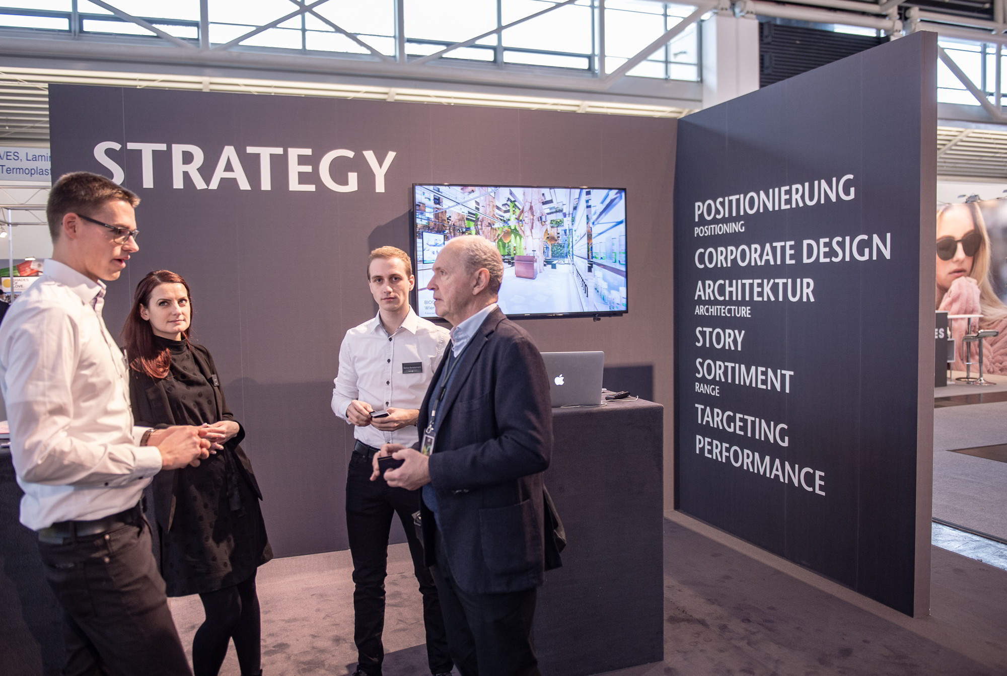 Bei einem Quiz mittels VR-Brille analysiert der Besucher mit Unterstützung eines digitalen Experten zunächst seine aktuelle Positionierung, indem er seine Stärken erkennt oder explizit herausstellt. Auf dieser Fläche wird er von den Studierenden der Hochschule Aalen kompetent betreut. Virtuell durchläuft er dabei die realen Geschäfte dreier Optiker, in denen er sich neue Inspiration für die eigene Positionierung in einem interaktiven 3-D-Erlebnis holen kann. Die Optiker, die in Kurzfilmen vorgestellt und interviewt werden, inspirieren dabei per Video in unterschiedlichen Bereichen. Drei Positionierungen, die sich charakteristisch unterscheiden, werden beim opti SHOWCASE herausgegriffen und stehen im Vordergrund. So trifft der User bei der VR-Experience, bei der die neueste VR-Brille Oculus Quest zum Einsatz kommt, auf Herbert Huber, Huber Optik (Grafing), Michael Högl, Optik Högl (München) und Dieter Funk, FUNK Optik (München/Kinsau), die die folgenden Personas verkörpern: