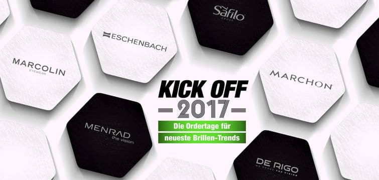 Anpfiff in der Optikbranche: Am 10. und 11. Januar findet mit der Kick Off 2017 das erste Fachevent des Jahres statt. Ins Leben gerufen werden die Ordertage von De Rigo, Eschenbach, Marchon, Marcolin, Menrad und Safilo. Deutschlandweit acht große Fußball-Stadien bieten dabei den Rahmen für die Präsentation der neuesten Brillen-Trends.