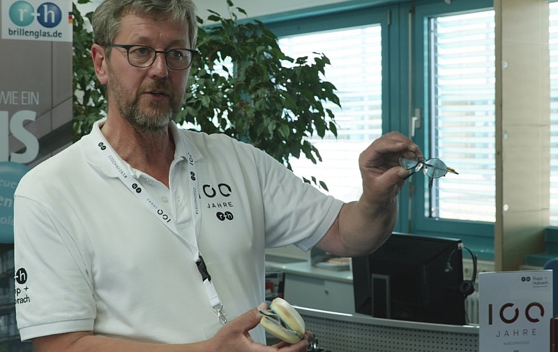Persönliches Highlight für den eyebizz-Redakteur war die Führung durch die Produktion von Rupp + Hubrach. Bis zu 10.000 Brillengläser werden täglich in drei Schichten in Bamberg und der Niederlassung in Blessington/Irland hergestellt. Wenn Karl Zimmermann, zuständig für Oberflächenfertigung und Einschleifservice, die einzelnen Arbeitsschritte erklärt, könnte man ihm stundenlang zuhören.
