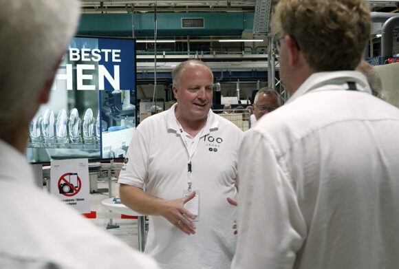 Familiäre Strukturen und freundlicher Umgang bei geringer Fluktuation beschreibt das Betriebsklima in Bamberg. Obwohl seit 20 Jahren zu Essilor gehörend, scheint das die eigene Identität made in Germany nicht verwässert zu haben. Geschäftsführer Ralf Thiehofe, seit 27 Jahren dabei, freute sich sichtlich über die große Resonanz, die er und sein Team mit ihrer Jubiläums-Tour bekamen.