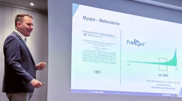 Auf der Vortragsbühne am Sonntag überzeugten die Experten und Expertinnen fürs Myopie-Management und die Augengesundheit mit ihren Lösungen, ihren Fallbeispielen, ihrer Lesart der aktuellen Studien und mit ihren erstklassigen Vorträgen. Dass Deutschland in Sachen Schokoladengenuss mit der Schweiz mithalten kann, durfte man hoffen. Warum aber die Schweiz deswegen ungleich mehr Nobelpreise einheimst, wusste Dr. Michael Bärtschi zu berichten. Der Schweizer Optometrist überzeugte und begeisterte das Publikum auch abseits seines eigentlichen Themengebietes ähnlich wie das Dr. Thomas Katlun gelang, der die Augengesundheitsversorgung als Freund der Augenoptiker aber dennoch aus seiner Sicht eines Augenarztes erläuterte.