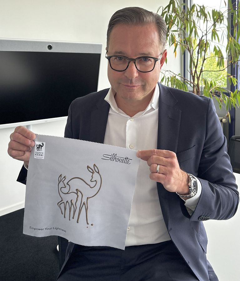 Tom Smits mit dem neuesten Brillentuch „Tribute to Bambi“ für 2025 (Bild: Silhouette)