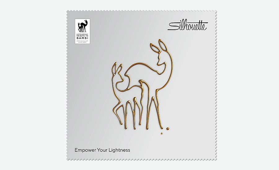 Damit möchte Silhouette als Partner des Charity-Ereignisses ein Zeichen für Hoffnung, Verantwortung und die Kraft der Leichtigkeit setzen. Im Herzen des Designs steht das ikonische Doppelreh von „Tribute to Bambi“ – zwei sich zugewandte Silhouetten, eingefasst in eine sanft schimmernde, metallische Kontur.