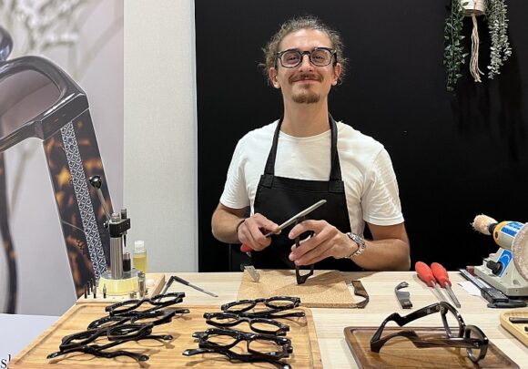 Markus T freute sich über einen besseren Standplatz als im letzten Jahr und die wieder gewonnene Normalität im Messebetrieb. Als Unternehmen mit eigener Manufaktur, das lokal produziert, sei man trotz Krise gut aufgestellt, sagt er. „Wir beziehen nur ein Material von Übersee, das Titan. Hier haben wir den Lagerbestand deutlich aufgestockt. Das kostet viel, aber nicht produzieren zu können, kostet noch mehr Geld.“ Im nächsten Jahr feiert Markus T 25-jähriges Jubiläum. Da wird es, wie zu erfahren ist, einige Überraschungen geben, z.B. ganz besondere Editionsbrillen.