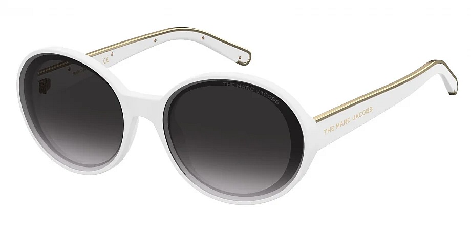 Diese von den 80er Jahren inspirierte Sonnenbrille kombiniert die ovale Silhouette mit einer Vielzahl von auffälligen Details. Der Vintage-Effekt dieses Acetatrahmens wird durch die Weiß-Gold-Mischung und die sehr flachen, schattierten Gläser verstärkt. Die Bügel sind mit Metall umrandet und stellen das Marc Jacobs „J“ dar. Die Signatur des Designers ist auf der Innenseite der Bügel hervorgehoben.