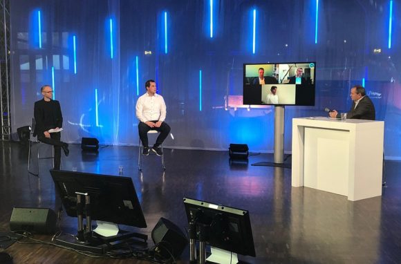 Spectaris-Trendforum 2020 – in diesem Jahr wurde die Berliner Classic Remise zum Sendestudio, hier beim Start mit Wolfram Kons und Josef May (Bild: Spectaris)