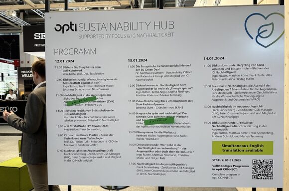 Die Verleihung des ersten opti Sustainability Award war ein Höhepunkt des Programms auf dem Sustainability Hub im Januar in München. Beides dient der Aufmerksamkeit eines immens wichtigen Themas, auch in der Augenoptik.