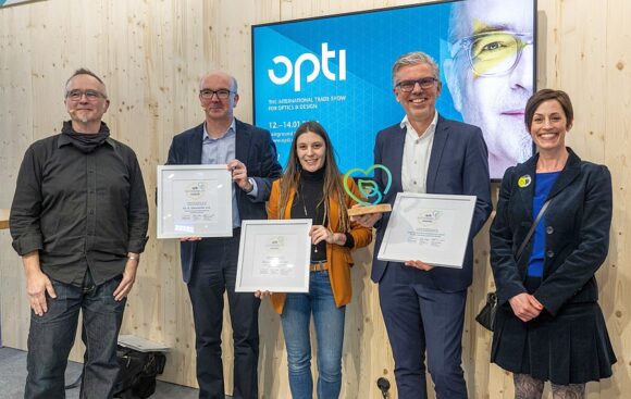 Aufmerksamkeits-stark war die Verleihung des ersten Sustainability Award, der an Andreas Schmidt von Augenblick Brillen Kontaktlinsen GmbH ging. Der Betrieb hat sich als Ziel gesetzt, den ökologischen Fußabdruck so klein wie möglich zu halten und dabei den sozialen Aspekt in ihrem Umfeld und im Augenblick-Team zu berücksichtigen, u.a. durch die Umstellung auf LED und Bewegungsmelder, von Direktwasser-Anschluss auf ein geschlossenes System.