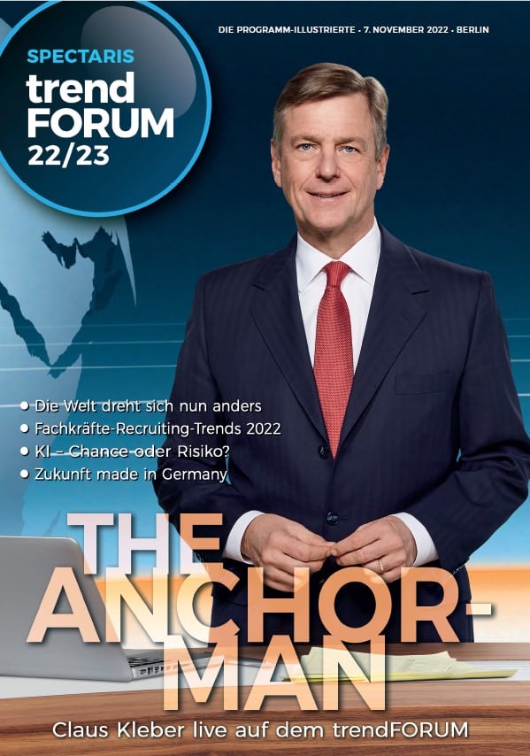 In Zeiten, in denen sich die politische Lage fast täglich ändert, haben die Veranstalter vom Trendforum als Keynote Speaker einen der bekanntesten Anchormen im deutschen Fernsehen, Claus Kleber, eingeladen (Bild Programmheft: Spectaris Trendforum)