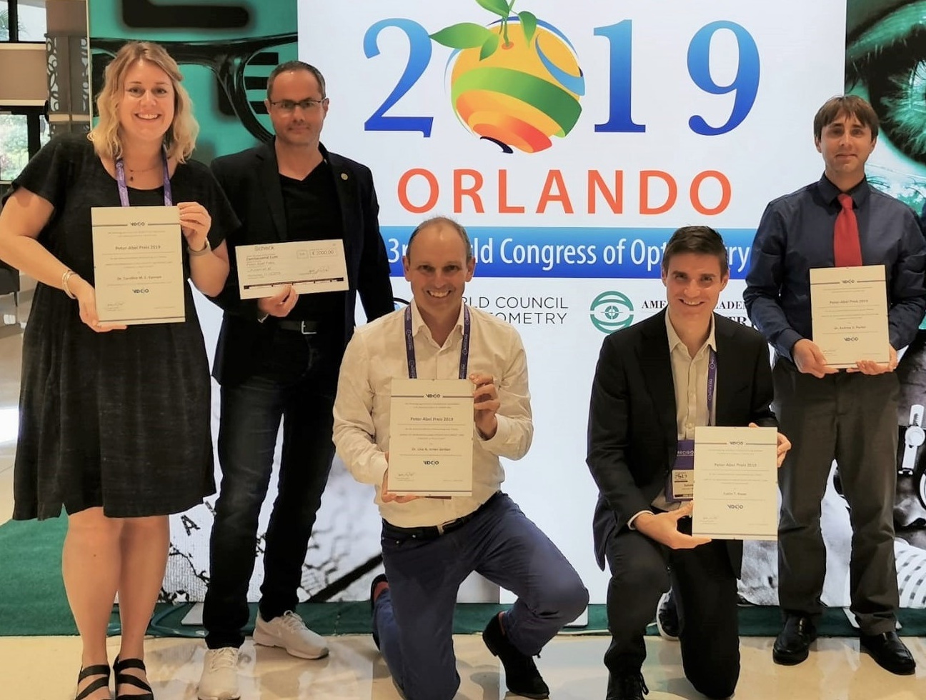 Ralf Bachmann verlieh als stellvertretender Vorsitzender eine Woche später während der American Academy of Optometry den Preis persönlich an die Class-Study-Mitglieder Dr. Carolina M. E. Kunnen, Dr. Andrew D. Pucker und Prof. Lyndon Jones. Der Glückwunsch der VDCO richtet sich an alle diesjährigen Preisträger/-innen der Study Group: Dr. Lisa A. Jones-Jordan, Dr. Daniel R. Powell, Justin T. Kwan und Dr. Sruthi Srinivasan.