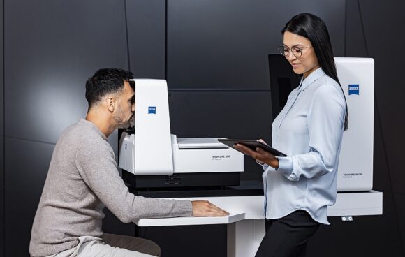 Objektive und subjektive Refraktions-Bestimmung in fünf Minuten: Die geringe Größe und die leichte Bedienbarkeit als zusätzliches Plus – der Visucore 500 ist eine der neuen Ideen aus Aalen (Bild: Zeiss Vision Care)