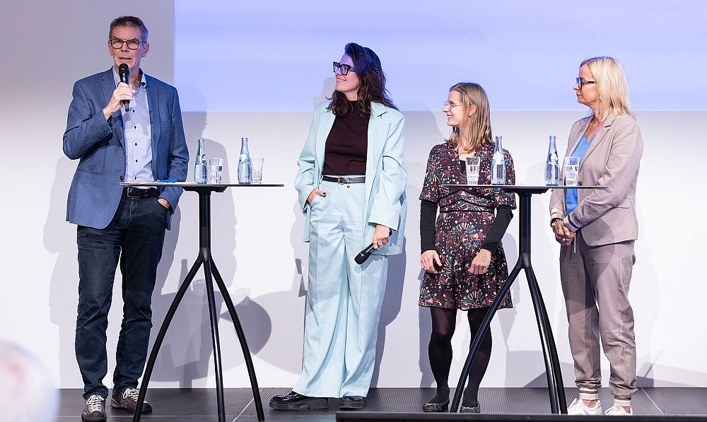 Podiums-Diskussion auf der Obermeister-Tagung 2025: (von links) Rainer Hankiewicz, Anna-Magdalena Reichow, Dr. Carolin Truckenbrod und Daniela Steinkämper (Bild: ZVA / Peter Magner)